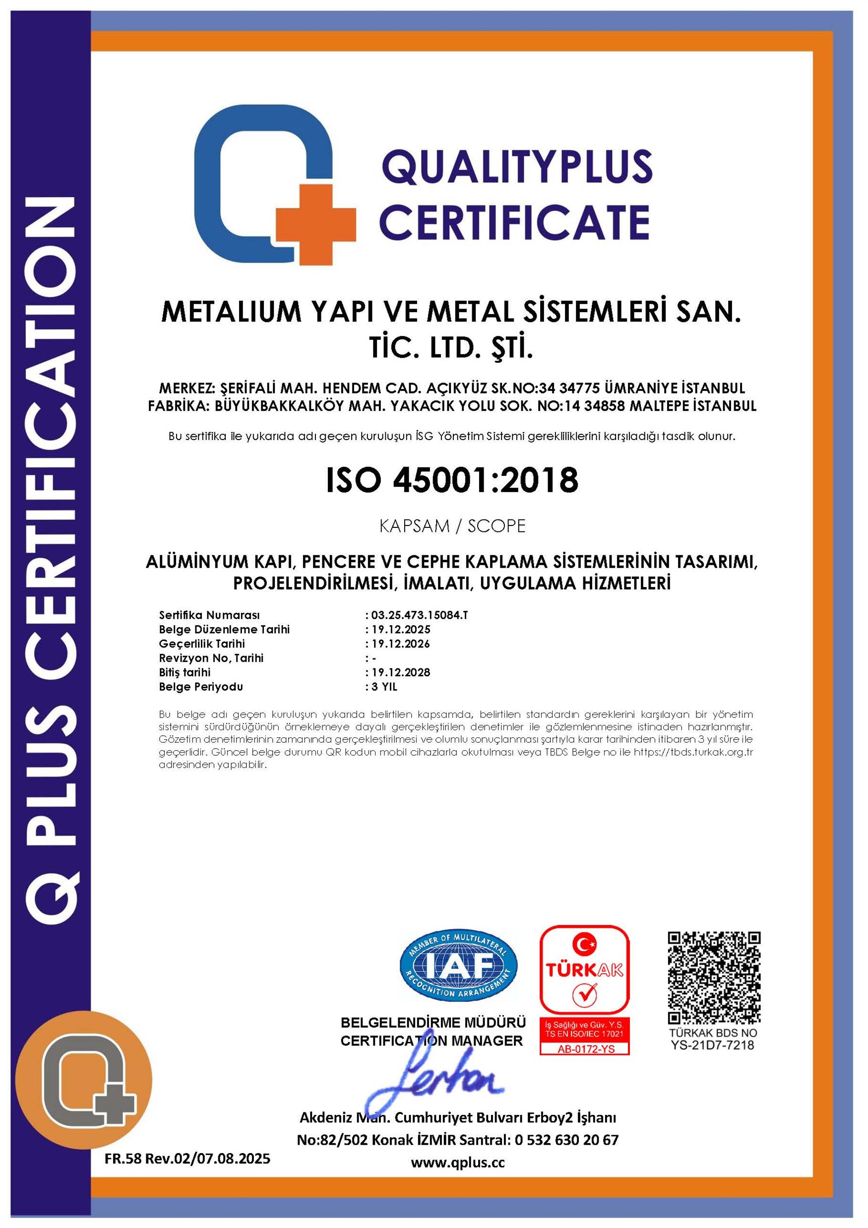 METALIUM YAPI ISO 45001 SERTİFİKA - TÜRKÇE