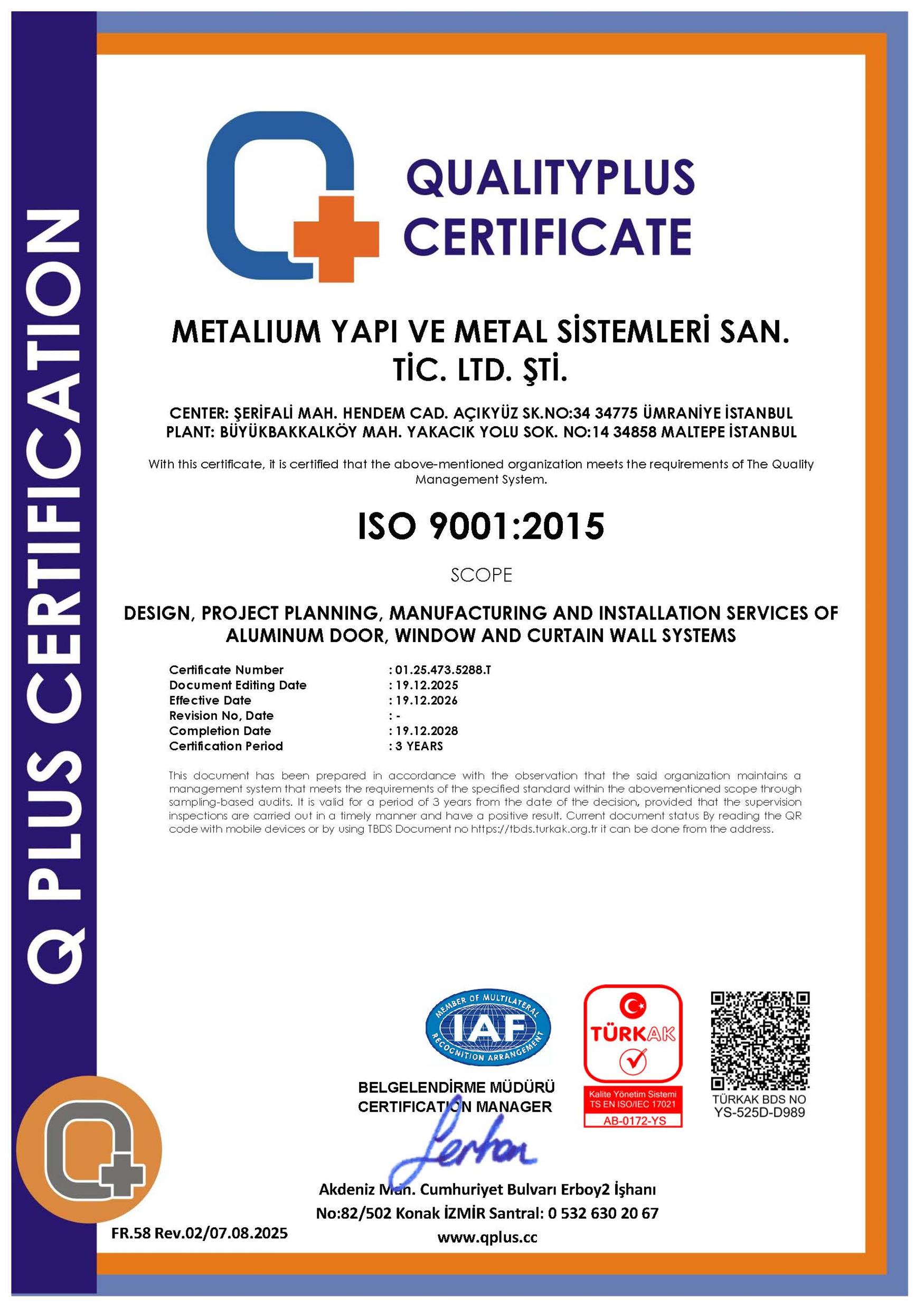 METALIUM YAPI ISO 9001 SERTİFİKA - TÜRKÇE